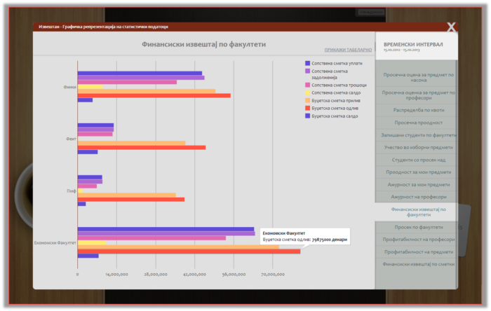 Complying with the law in Macedonia we have implemented an algorithm which generates admission points from the student’s high school grades and results from the State Matura. Then according to those admission points the system ranks all of the students that applied for admission and notifies them if they are admitted to the public college or not. With this feature we have saved faculties countless hours of administrative work and significantly reduced the room for mistakes.